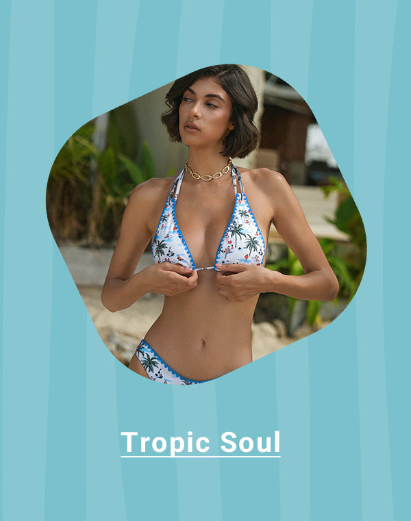 Blue Printed Triangle Bikini Top