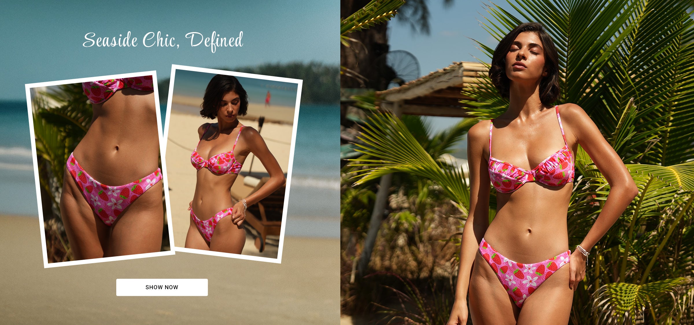 Rose Red Halter Printed Triangle Bikini Top