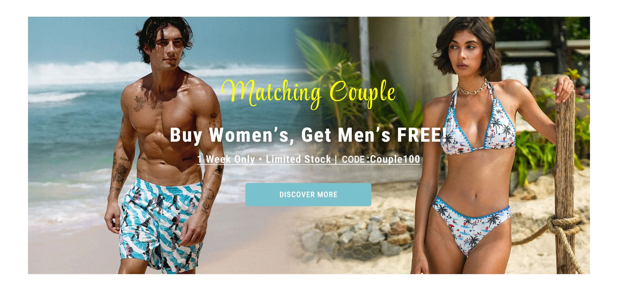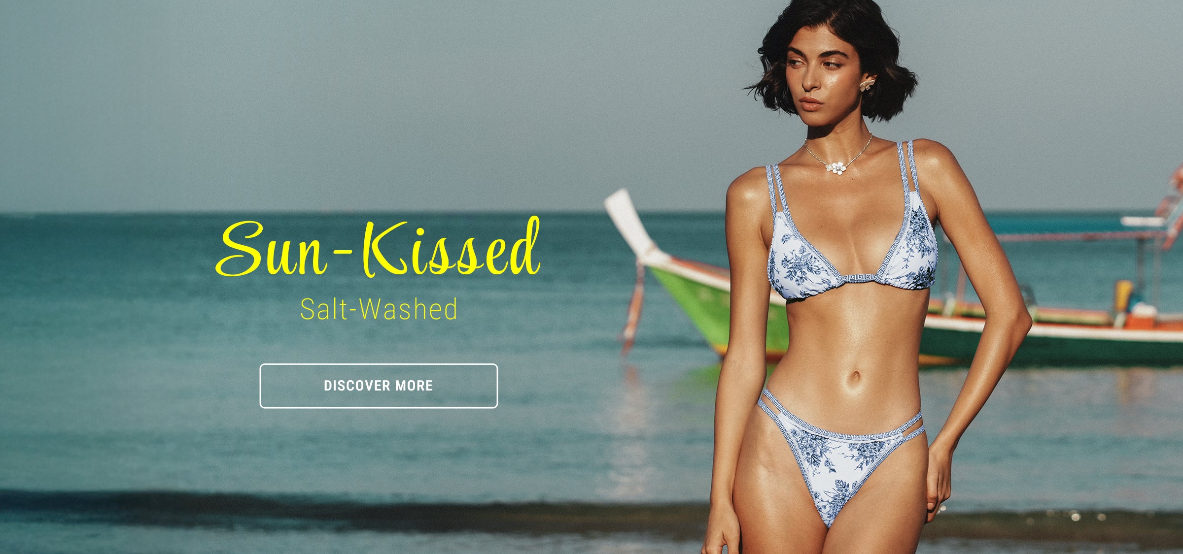 Light Blue Halter Printed Triangle Bikini Top